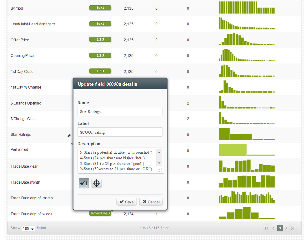 To help us remember what the star ratings meant, we used BigML’s new in-line editing function to input the meanings for each rating,