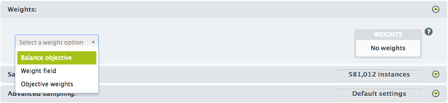 BigML gives you three ways to apply weights to your dataset: