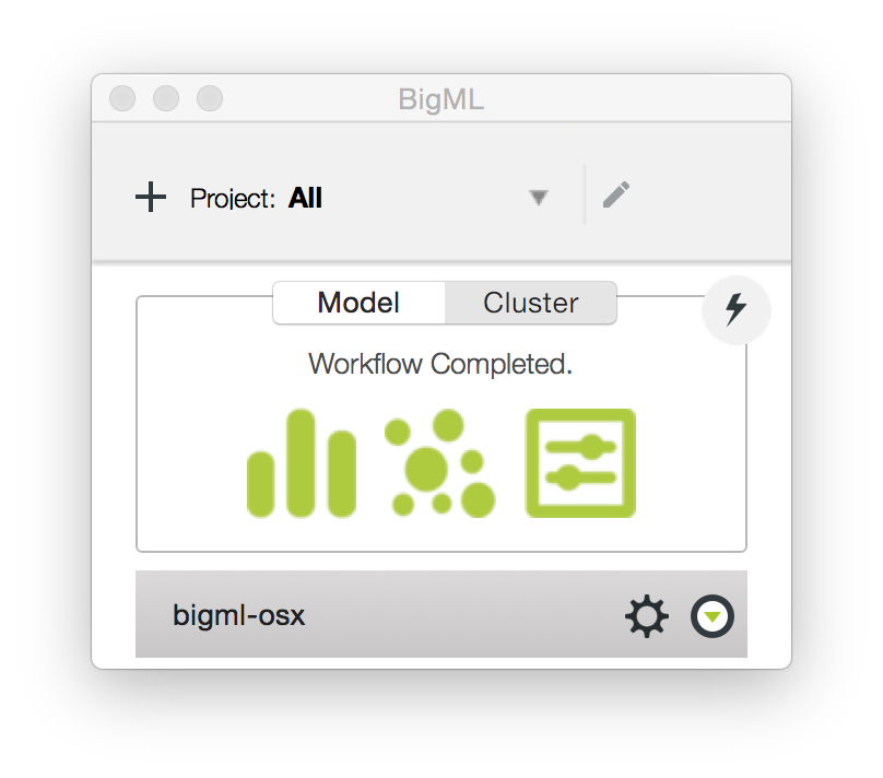 BigML for Mac OS X not only supports tree-based models but also enables cluster analysis (and very soon anomaly detection). Switching from creating models to creating clusters is very easy: you just have to select the corresponding workflow. Now, if you drag the same file as before on BigML main window, you will be able to make new predictions using BigML’s unsupervised clustering algorithms. BigML for Mac OS X is smart enough to automatically update all the related resources and workflows in the background, whenever you make UI selection changes. This saves you the headache of manually maintaining the proper state of each resource and instead lets you concentrate on getting valuable insights from your data. In the near future, you won’t only be able to configure your own workflows, but also to personalize them.