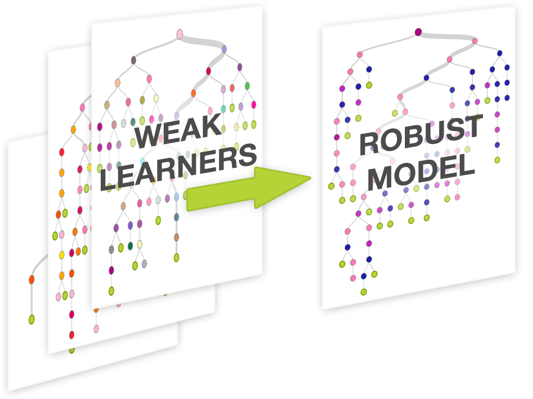 As a demonstration, we’ll take a look gradient tree boosting. This is an algorithm that has gotten a lot of praise and press lately due to it’s performance in general, and the popularity of the xgboost library in particular. Let’s see if we can cook up a basic version of this algorithm in WhizzML.