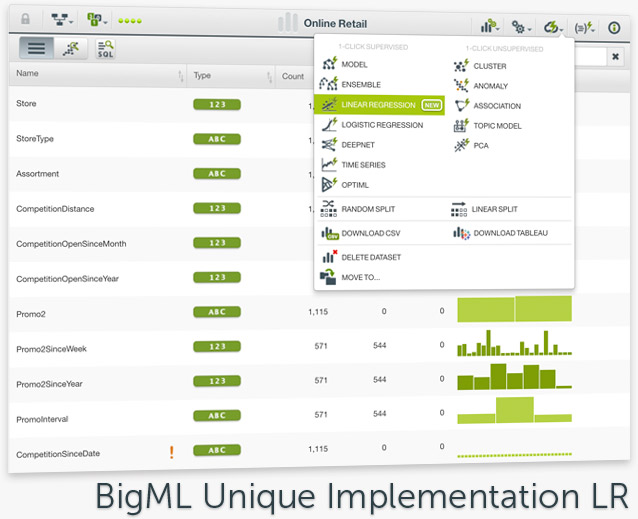 As usual, this release comes with a series of blog posts that progressively explain Linear Regression through a real use case and brief tutorials on how to apply it via the BigML Dashboard, API, WhizzML and bindings. While we will not be having a live webinar for this release, feel free to contact us at support@bigml.com with any questions or feedback as always.