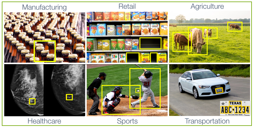 Object Detection is a fundamental computer vision task that deals with detecting instances of semantic objects of predefined classes (e.g., human beings, products in a store, vehicles in traffic) in digital images and videos. Object detection models determine the objects that appear in a given image along with the exact coordinates for each identified object in the form of bounding boxes. This differs from the previously launched Image Classification, which aims to assign a label (or labels) to a given image from among a predefined set of class labels, e.g., truck, motorcycle, SUV, or car.