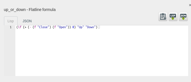 In addition, we realize that the problem at hand is predicting a field that cannot be found in the raw data. Instead, it needs to be produced as a combination of them. In BigML, that combination should be defined by using our transformations language, Flatline, to generate the expression that we’re interested in and store the result in a new up_or_down generated field.