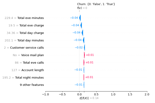 We’ve also improved our Python bindings to provide helpers for that case. Imagine we try to find explanations for a Churn prediction model. The data that we start from contains several features, some of which are categorical, and a categorical objective field (Churn) that is marked as “True” whenever the user churned from the service.