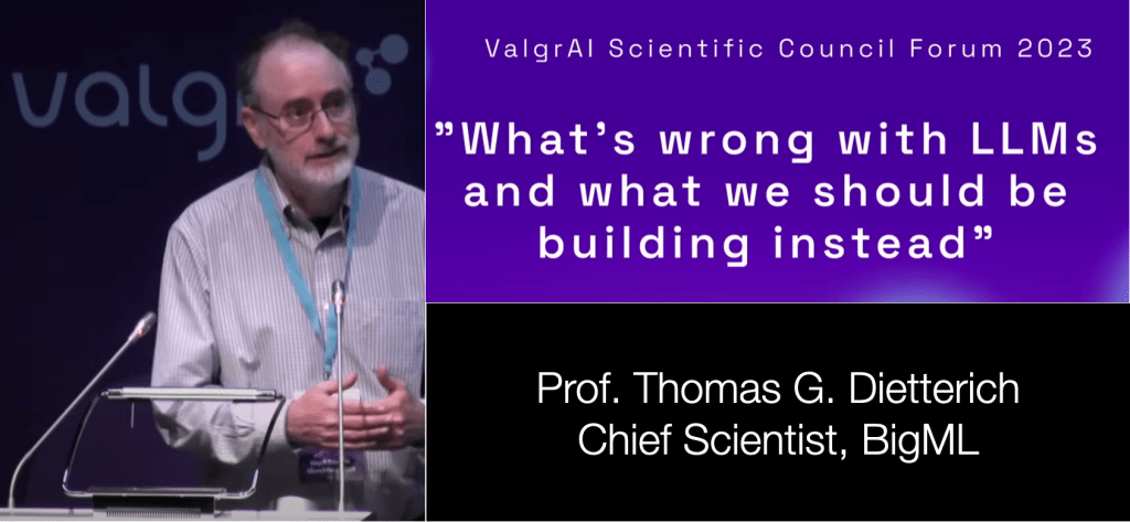 Earlier this year, BigML’s Chief Scientist and Oregon State University Emeritus Professor Tom Dietterich gave a keynote presentation titled “What’s wrong with LLMs and what we should be building instead” at the ValgrAI (Valencian Graduate School and Research Network of Artificial Intelligence) event in Valencia, Spain.